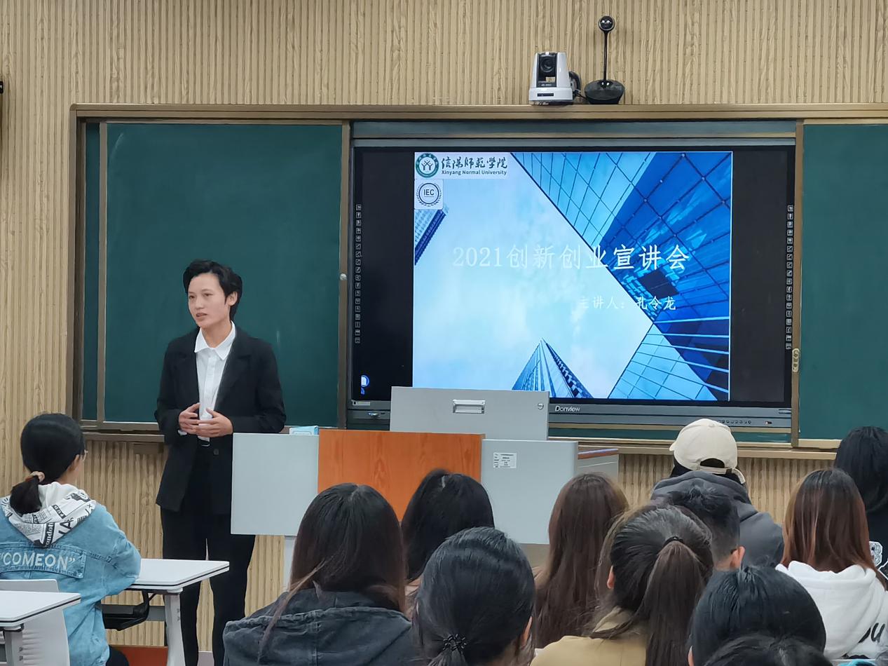 为拓宽必赢官网学生创新创业思路,提高必赢官网学生认知高度,必赢官网于10月18日下午七点召开创新创业宣讲会。此次会议的主讲嘉宾是孔令龙,他是中共党员、信阳师范学院优秀毕业生,曾荣获2018年度中国大学生自强之星,第三届全国大学生创新创业优秀典型,河南省第三届大学生创新创业标兵等称号。