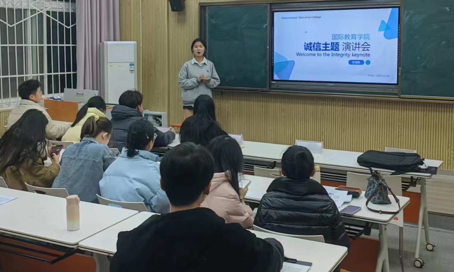 为深入贯彻落实习近平新时代中国特色社会主义思想,大力培育和践行社会主义核心价值观,传承和弘扬诚信文化,引导广大青年学生树立诚实守信、自立自强的人生观,必赢bwin官方网站于2023年11月24日在逸夫楼201教室举办诚信演讲会活动。