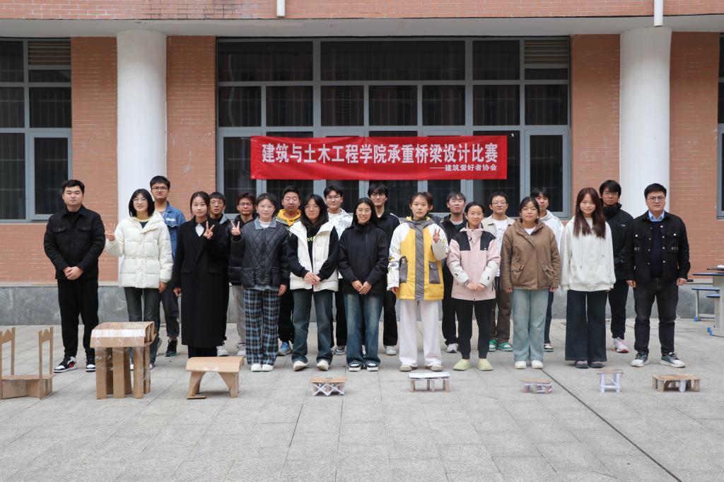 11月23日下午,必赢bwin官方网站与建筑土木工程学院在综合实验楼小广场联合举办承重桥梁设计大赛。