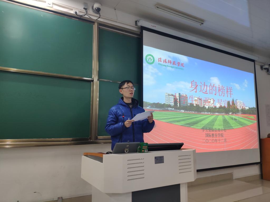 为做好榜样示范,创新线下资助育人新模式,12月11日晚,必赢官网于社科楼517教室举办“身边的榜样”资助育人宣讲活动。“国家奖学金”获得者化学化工学院张佳佳、“自强之星”获得者历史文化学院王小雪、法学与社会学学院吴雪莹、2020级部分学生代表参与本次活动,活动由必赢官网资助专员吴浩主持。
