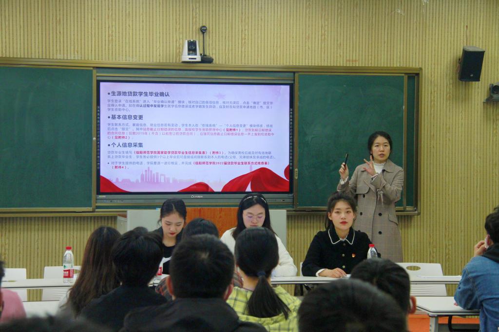 会上,竹梅老师详细讲解了资助系统上毕业确认的要求和流程、提前还款和正常还款以及升学展期还款的程序和步骤,给所有生源地助学贷款毕业生普及了相关金融知识和信用知识,强调了诚信对个人的重要性,宣传了个人征信系统的约束作用,让毕业贷款学生充分认识到个人应该承担的贷款责任和义务以及违约对个人信用造成的严重危害。