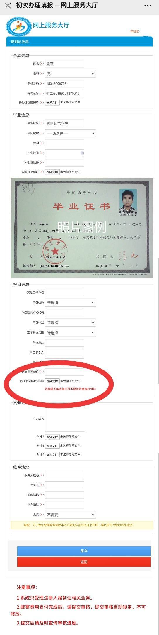 4、初审通过后请将报到证原件邮寄至河南省大中专学生就业服务中心(仅报到证改签办理和受理省外院校毕业生报到业务需要参照此条);