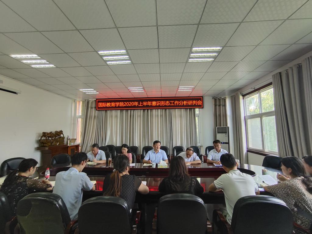 为深入贯彻落实意识形态工作责任制,把意识形态工作各项任务落到实处,7月8日下午,必赢bwin官方网站在逸夫楼302会议室召开2020年上半年意识形态工作分析研判会。学院领导班子成员,科级干部以及辅导员班主任参加。会议由党委书记张震主持。