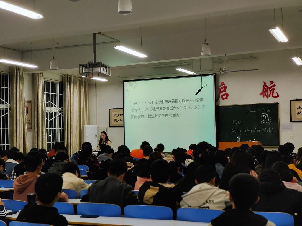 此次见面会由必赢bwin官方网站土木工程专业学业指导老师姚玲主讲,同学们以热烈的掌声欢迎了姚老师的到来。会上,姚老师就本专业的基本概况、培养模式、教育教学体系、特色课程、学生获奖情况以及就业前景等方面作了阐述。此外,姚老师特别提到女生在土木专业的学习生活,以及女性在未来工作中的方向选择,为土木工程专业女生提供了更有针对性的有效指导。最后,姚老师就同学们关心关注的问题,进行了一一解答。
