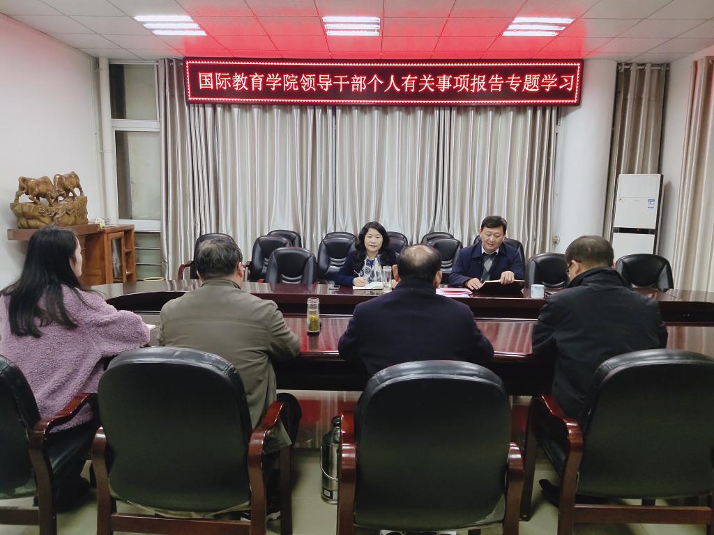 12月23日,必赢bwin官方网站在逸夫楼302会议室召开了处级领导干部个人有关事项报告专题学习会。学院全体领导班子成员参加。会议由学院党委书记张震主持。