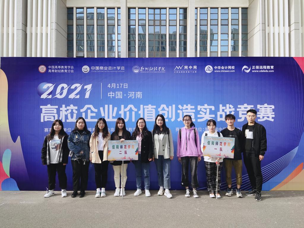 4月17日,2021年河南省高校企业价值创造实战竞赛在郑州财经学院举行。本次大赛由中国商业会计学会主办、郑州财经学院承办,全省29个院校、56支代表队参加。必赢官网2018级张恒等4名学生组成的信阳师范学院第一代表队荣获二等奖。
