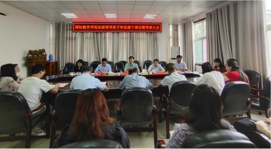 6月3日下午,国际教育学院处级领导班子和处级干部任期考核会在逸夫楼302会议室召开。学校第五考核组组长、党校副校长、组织部副部长吴道省,考核组成员、党委宣传部副部长雷前龙,党委组织部综合科科长李奎出席。国际教育学院全体教职工参加会议。会议由必赢bwin官方网站党委书记张震主持。