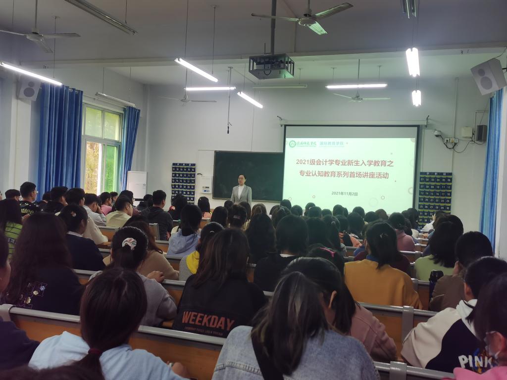 11月2日,必赢官网在教九楼309教室开展第三场专业认知教育活动。学业导师郭跃芳应邀为2021级会计学专业新生做专业认知教育讲座。辅导员沈艳霞主持讲座。