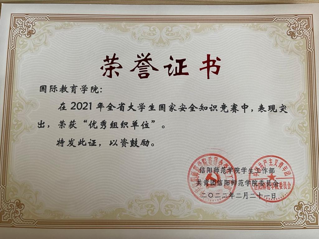 必赢官网在2021年度全省大学生国家安全知识竞赛中获佳绩