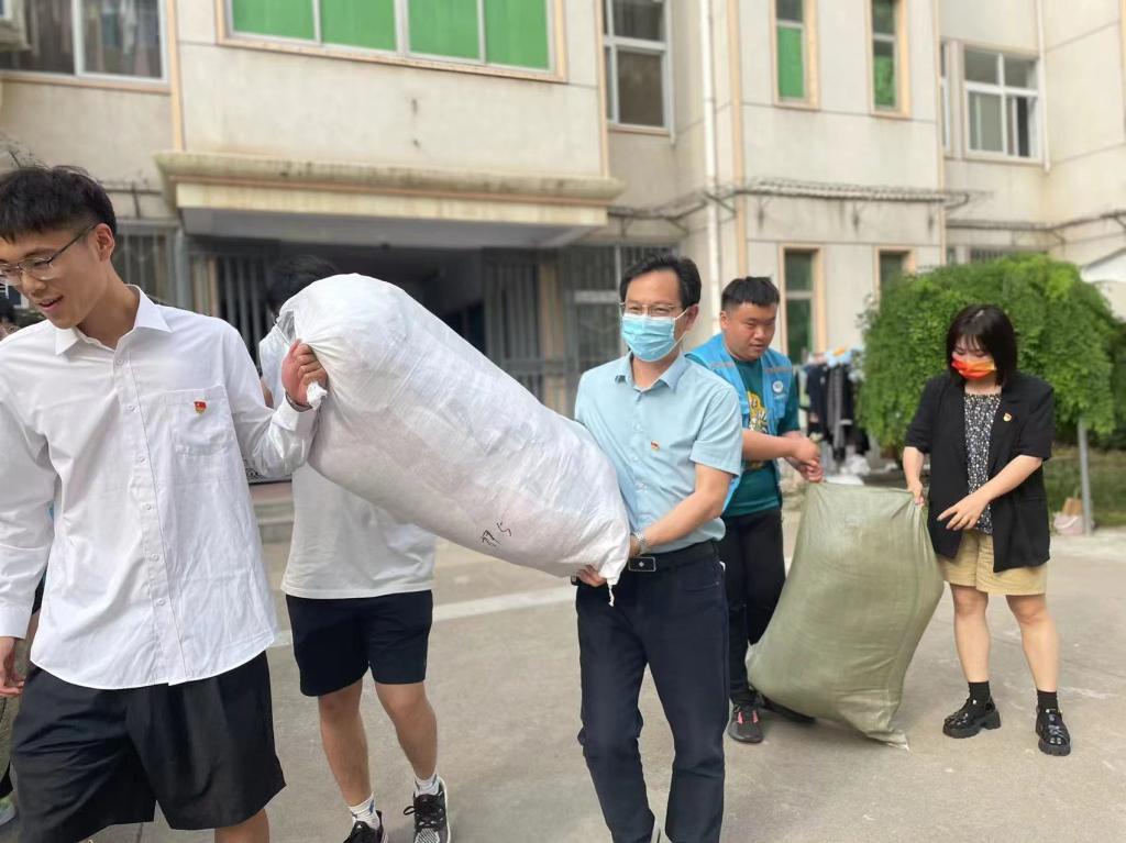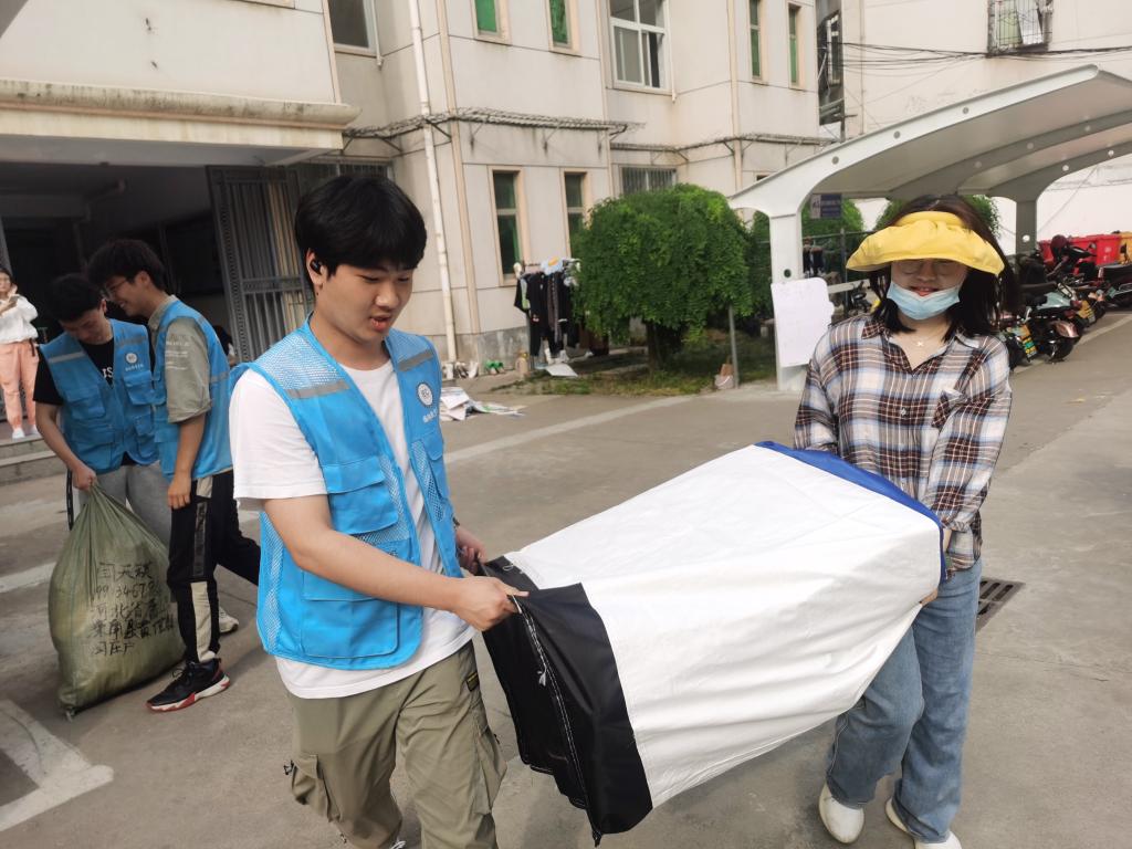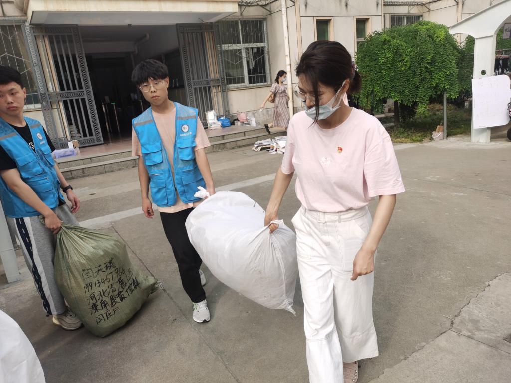 随后,由100余名学生党员、志愿者组成的毕业生行李打包志愿服务团队在学院领导、老师的带领下投入了行李打包搬运工作。