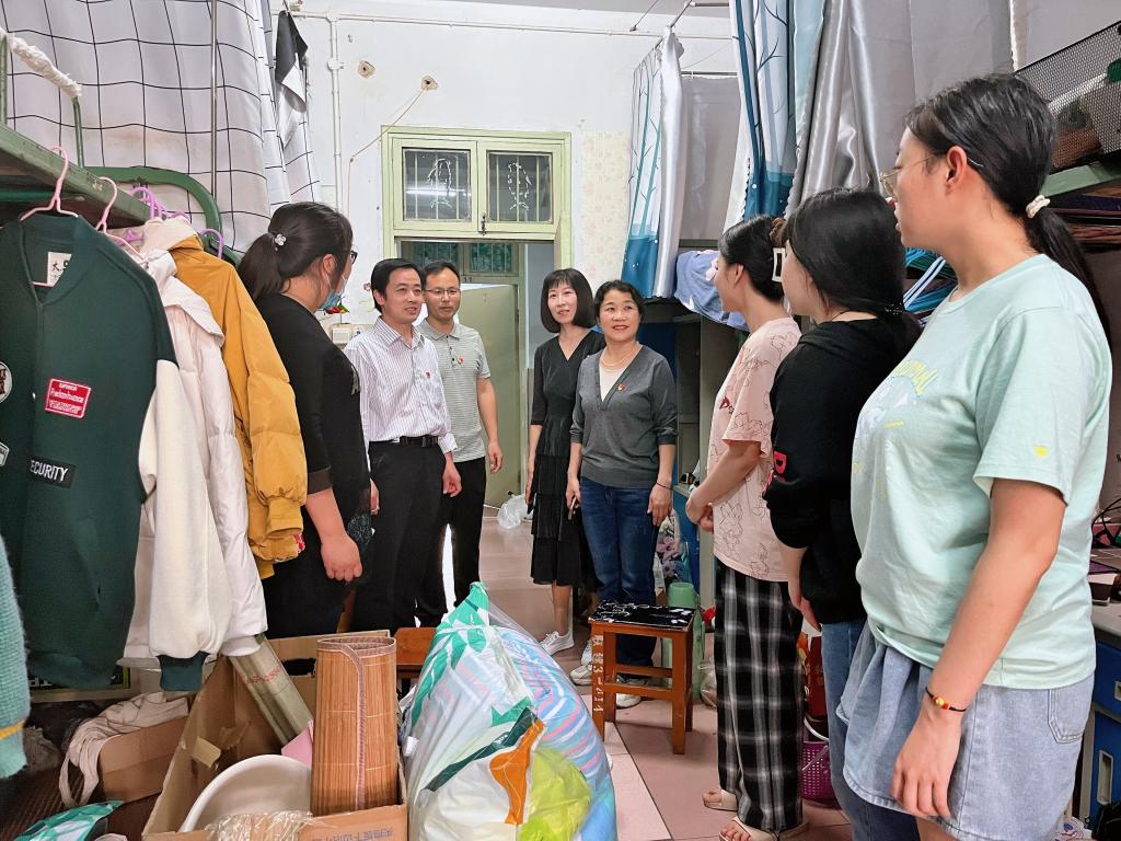 李舟与毕业生进行了亲切交流,为即将告别母校、踏上工作岗位的毕业生送去了良好的祝愿。他详细了解了毕业生的升学情况、就业去向以及离校手续办理情况,就毕业生较为关心的物品打包搬运、毕业证书发放等具体事宜一一做了解答,叮嘱离校毕业生及时了解家乡防疫政策,合理安排行程并做好个人疫情防护。要求辅导员、班主任要充分考虑毕业生的实际困难和个性化需求,科学制定离校工作方案,耐心细致提供精准服务,尽全力做好毕业生行李打包和邮寄工作,切实解决毕业生的后顾之忧。