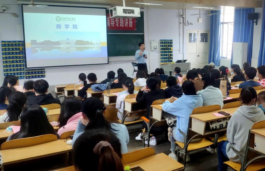 俞彤晖详细介绍了商学院学科专业设置、师资队伍建设、科学研究水平以及硕士研究生培养质量、学习环境、奖助体系等具体情况,深入浅出地分析了2022年考研形势,详细讲解了研究生备考策略,他以风趣幽默的语言引导在场学生避免盲从、理性报考,有的放矢、科学备考,耐心解答了同学们在备考过程中存在的疑虑和困惑做,提出了合理有效的对策建议。随后,商学院优秀硕士研究生代表结合个人备考经历,从院校选择、参考书购买、复习规划三个方面分享考研经验。