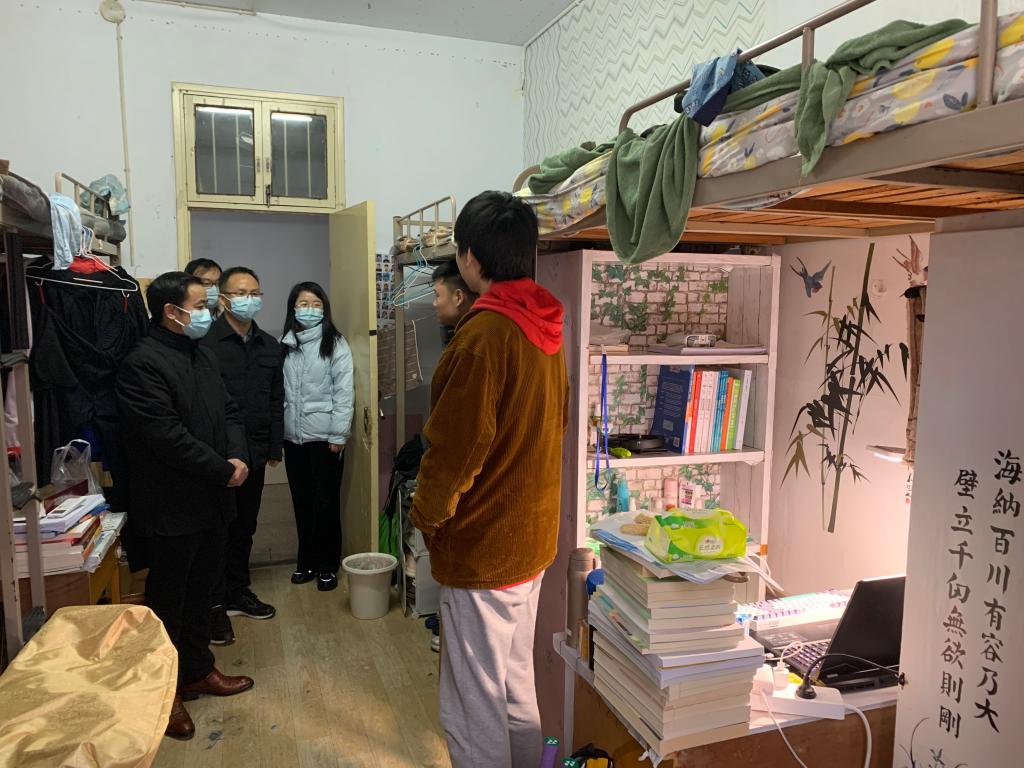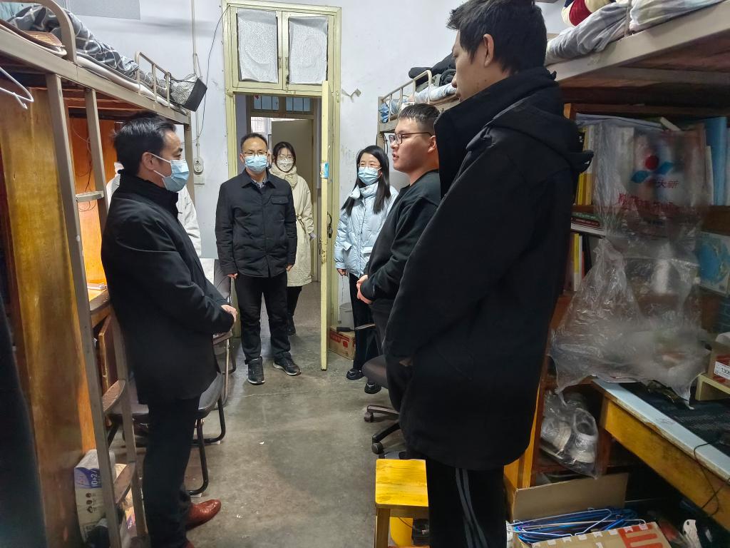 为细化落实《关于做好学生安全有序离校返乡工作的通知》文件精神,深入了解学生思想动态,加强人文关怀和心理健康疏导,帮助学生及时解决实际困难,11月29日下午,必赢bwin官方网站党委书记李舟、副书记付春锋带领辅导员、班主任深入学生宿舍进行走访慰问。