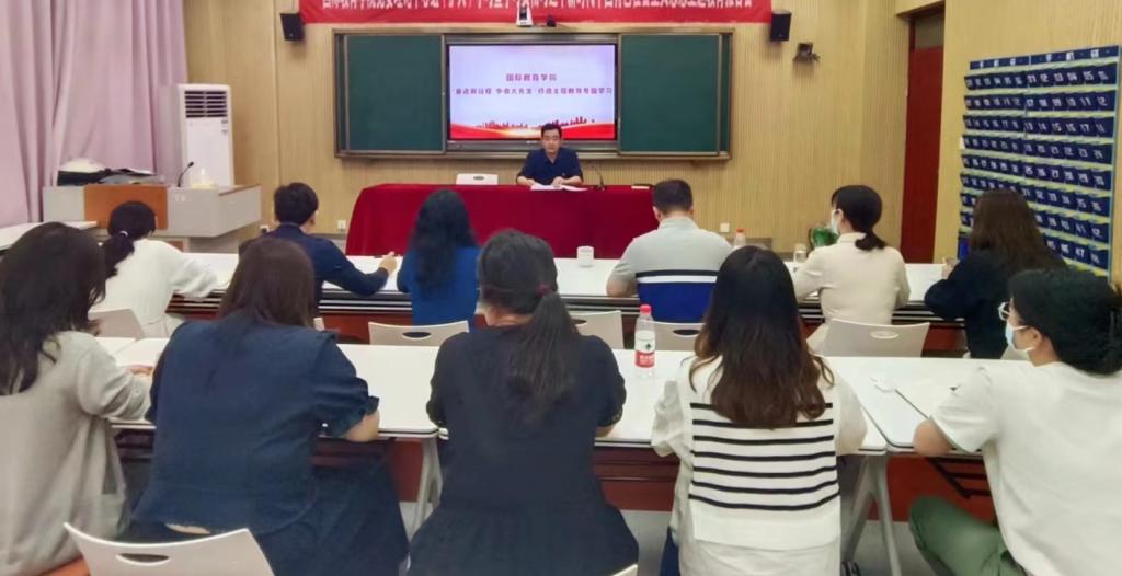 会上,李舟传达了校党委教师工作部《关于开展“奋进新征程 志做大先生”师德主题教育活动的实施方案》,带领全体教职工原原本本学习了《高等学校教师职业道德规范》《新时代高校教师职业行为十项准则》等师德相关制度法规,并就细化落实师德主题教育系列活动、进一步加强师德师风建设,结合学院具体实际做了安排部署。他强调,全体教职工要进一步提高政治站位,充分认识加强师德师风建设的重要性和紧迫性,充分领悟师德规范的具体要求和深刻内涵,全面贯彻党的二十大报告提出的“加强师德师风建设,培养高素质教师队伍,弘扬尊师重教社会风尚”指示要求,以务实有力举措高质量落实好师德主题教育各项工作。他要求全体教职工以此次活动为契机,踔厉践行“四有”好老师标准,坚持“四个相统一”要求,落实“六个下功夫”任务,切实增强教书育人、为人师表的责任感和使命感,心怀“国之大者”,坚守规范准则“底线”,坚持教书育人“标线”,追求师德修养“高线”,以德立身、以德立学、以德施教,严格遵守教师职业行为准则和有关纪律规定,强化责任担当,规范履职行为,以高质量师德师风建设成效赋能立德树人工作,为服务和保障中外合作办学事业发展提供坚实保障和有力支撑。