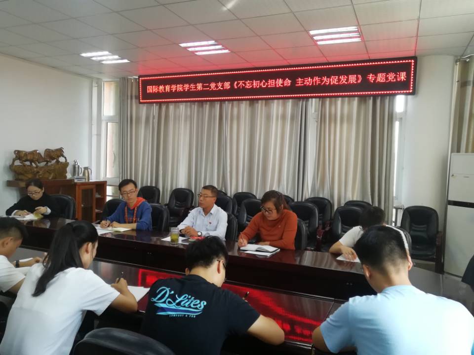 9月29日下午,必赢bwin官方网站党委副书记姚新春在逸夫楼302会议室讲授“不忘初心担使命、主动作为促发展”专题党课,学生第二党支部师生党员聆听了此次党课。