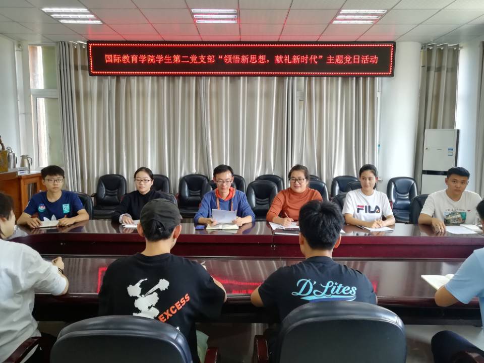 9月29日上午,学生第二党支部在逸夫楼302会议室开展“领悟新思想 献礼新时代”主题党日活动。会上,组织委员沈艳霞传达了《中共信阳师范学院委员会关于开展“不忘初心、牢记使命”主题教育的实施方案》精神;专职辅导员吴浩就支部如何开展主题教育进行了部署,并对每名党员提出了要求,希望党员们能够提升思想认识,实现理论学习有收获,思想政治受洗礼。