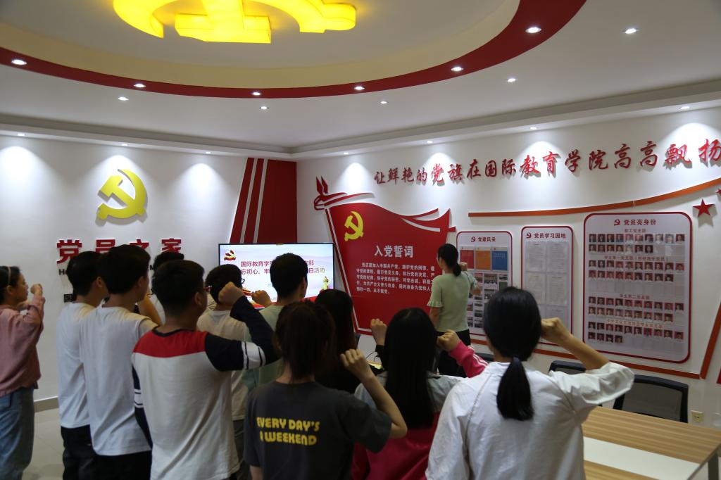 9月24日下午,学生第一党支部在逸夫楼202党员之家开展主题党日活动。会上,组织委员张雨雪传达了《中共信阳师范学院委员会关于开展“不忘初心、牢记使命”主题教育的实施方案》精神;全体党员观看了《初心永恒》专题纪录片;党员交流发言;支部书记余艳楷对本次“不忘初心、牢记使命”主题教育支部以及党员层面需要开展的工作进行了强调,希望每名党员能够认真落实“守初心、担使命,找差距、抓落实”总要求,制定一个学习计划,列出一个问题清单,开展一次志愿服务,实现一次思想政治洗礼;全体党员重温了入党誓词。