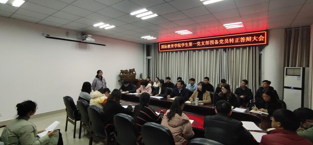 为进一步加强基层党支部的组织力,切实发挥学生党支部教育党员、管理党员、监督党员的工作职责,推进高校学生党建工作组织化、制度化、具体化,12月3日,必赢bwin官方网站中外文化交流协会党支部、学生第一党支部以及学生第二党支部先后召开预备党员转正答辩大会。学院党委书记张震、副院长何英干、党委副书记姚新春参加并指导联系党支部预备党员转正答辩工作。