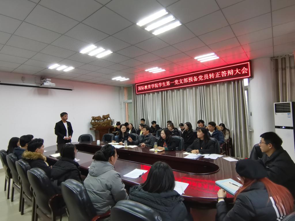 为进一步加强基层党支部的组织力,切实发挥学生党支部教育党员、管理党员、监督党员的工作职责,推进高校学生党建工作组织化、制度化、具体化,12月1日,必赢bwin官方网站中外文化交流协会党支部、学生第一党支部以及学生第二党支部先后召开预备党员转正答辩大会。学院党委书记张震出席指导联系党支部预备党员转正答辩工作。