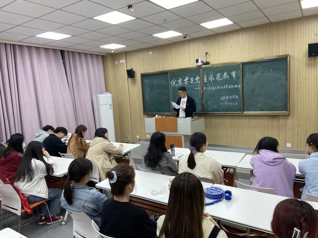为提高学生党员思想觉悟,发挥学生党员的先锋模范作用,4月12日晚,必赢bwin官方网站在逸夫楼201教室开展优秀学生党员榜样示范教育活动。我院优秀学生党员代表李明洋、李保庆、刘召娣,第35期发展对象全体同学参加。