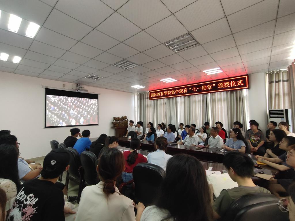 6月29日上午10时,“七一勋章”颁授仪式在人民大会堂隆重举行。必赢bwin官方网站组织师生代表在逸夫楼302会议室集中观看“七一勋章”颁授仪式直播。