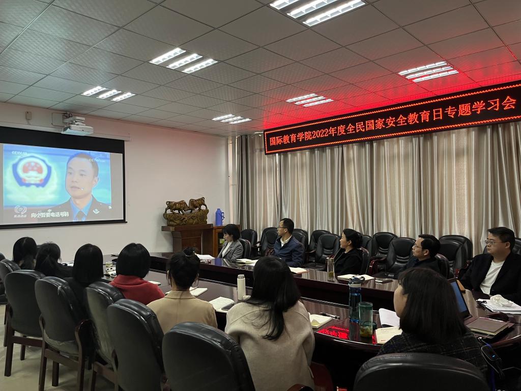 4月15日是全民国家安全教育日,学院党委高度重视,院党委书记李舟亲自安排部署学院国家安全主题宣传教育活动。下午3点,全体教职员工在逸夫楼302会议室组织召开2022年度全民国家安全教育日专题学习会,集中观看了国家安全专题片《危情谍影》,围绕“总体国家安全观”提出的时代背景、丰富内涵和实践要求进行了系统学习,并就中国特色社会主义进入新时代,我国国家安全面临的新形势做了深入研讨。